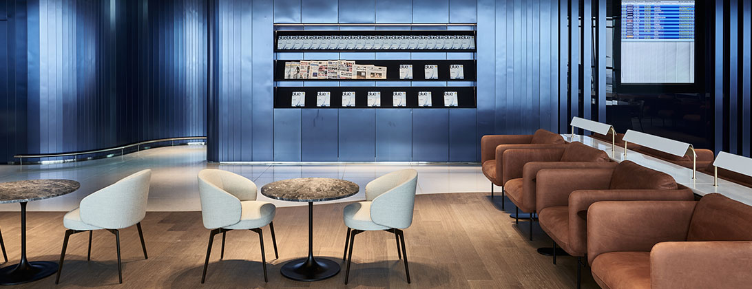 خلقنا مساحة عصرية جمالية مثالية وأضفينا عليها الروح اليونانية الكلاسيكية بمواد مثل الرخام والفسيفساء والزجاج والخشب لتمنح الركاب الشعور بالارتياح وتلبي احتياجات كل منهم دون النظر إلى رحلتهم وتوقيتها على مدار اليوم.