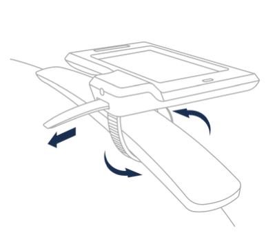 إذا كان لديك جهاز مزود بحزام مرن، وعند الرغبة في وضعه في أمتعتك، اربط الحزام حول المقبض حتى يتم تثبيته بإحكام، ثم اسحب أقرب فتحة للحزام فوق دبوس الإبزيم، واسحب الحزام من خلال الإبزيم ثم ثبته أسفل المقبض.