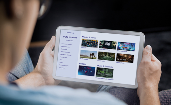 اجلس واسترخ واستمتع بالمحتوى المجاني لبوابة AEGEAN أو اتصل بشبكة الإنترنت اللاسلكي "واي فاي"
