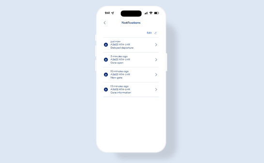 تلقي الإشعارات تلقائياً في حالة حدوث تغييرات في بوابات المغادرة أو أوقات المغادرة. لمعرفة المزيد عن هذه الخدمة، انقروا هنا.